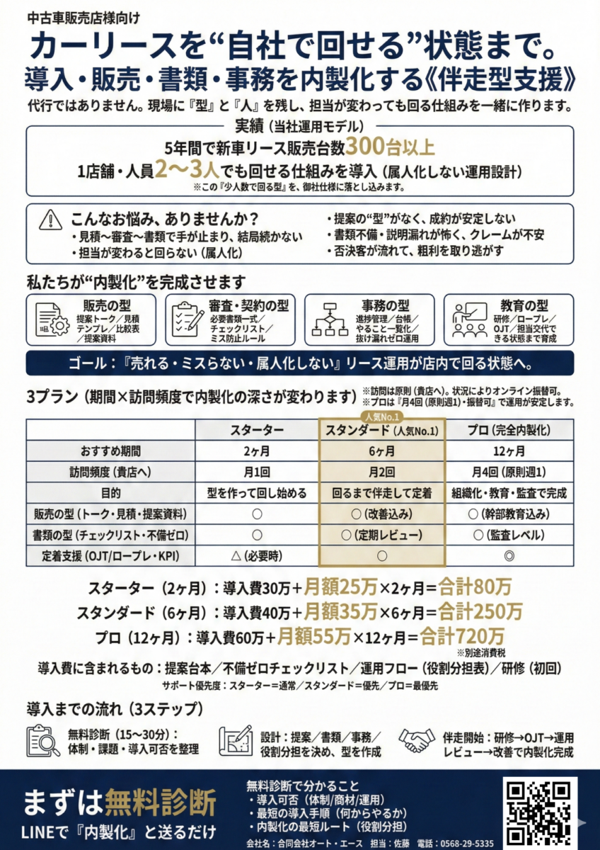 自動車販売店向け|カーリース導入サポート(伴走型)|最短で仕組み化