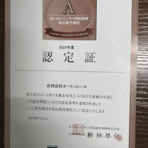 あいおいニッセイ同和損保様より認定証いただきました |